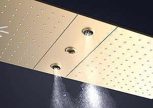 GROHE Grohtherm AquaTiles ist der Inbegriff eines wahrhaft einzigartigen Duscherlebnisses. Das Unterputz-Thermostat aus Metall in minimalistischem, horizontalem Design zeichnet sich durch versenkbare Tasten aus, die sich nahtlos in die Abdeckplatte einfügen und nur bei Aktivierung herausfahren. Es bietet mit bis zu fünf Duschfunktionen die ideale Grundlage für verschiedene luxuriöse Duschkonfigurationen. GROHE Grohtherm Aqua Tiles ist ab März 2026 in verschiedenen Farbtönen der GROHE Colors Kollektion, unter anderem im eleganten Phantom Black, erhältlich.