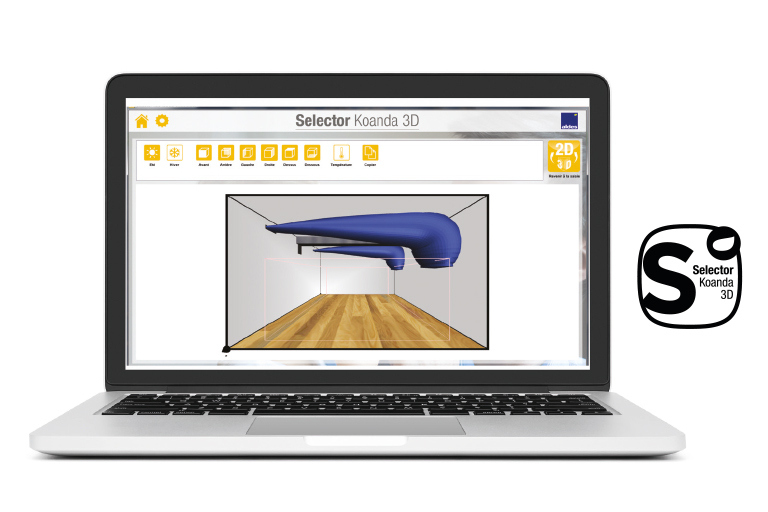 Ein besonderes Highlight ist unsere Software Selector Koanda 3D. Diese intuitive Auswahlsoftware ermöglicht es Ihnen, die geeigneten Luftdurchlässe zu finden und die Luftströme im Raum optimal zu gestalten. Dank einer benutzerfreundlichen Oberfläche bietet Selector Koanda 3D eine einfache Handhabung und unterstützt Sie dabei, den perfekten Kompromiss zwischen thermischem Komfort, Akustik und geringem Druckverlust zu finden.