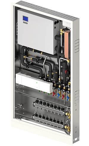 der Entnahmestelle. Außerdem reduziert sie den Energieverbrauch und sorgt für höchste Hygienestandards. Die kompakte Bauweise und der hohe Vorfertigungsgrad verkürzen die Installation und erleichtern den Betrieb. Dank integriertem elektrischem Durchlauferhitzer auf der Primärseite erreicht sie eine maximale Durchflussmenge von 18,6 l/min (statt bisher 13,4 l/min) und reduziert den Druckabfall um 88 Prozent auf nur 0,2 bar bei 9 l/min. Das System minimiert Stagnation, senkt das Legionellenrisiko und spart bis zu 18 Prozent Energie im Wärmepumpenbetrieb.