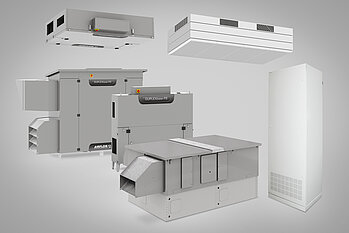 Die Filterklassifizierung der Lüftungsgeräte muss entsprechend der Außenluftqualität ausgewählt und angepasst werden: Auf dem Land reicht in der Regel ein Filter der Klasse ePM1 50 % (ehemaliger F7-Filter) aus. Bei hoher Feinstaubbelastung, wie es oft in Großstädten der Fall ist, sollten höherwertige Filter der Klasse ePM1 80% (ehemalige F9-Filter) zum Einsatz kommen. Auch ist bei der Planung zu berücksichtigen, ob eine thermische Nachbehandlung erforderlich ist: Muss die Luft nach der Wärmerückgewinnung aufgeheizt oder gekühlt werden? Wenn ja, sind Heiz- bzw. Kühlregister erforderlich.