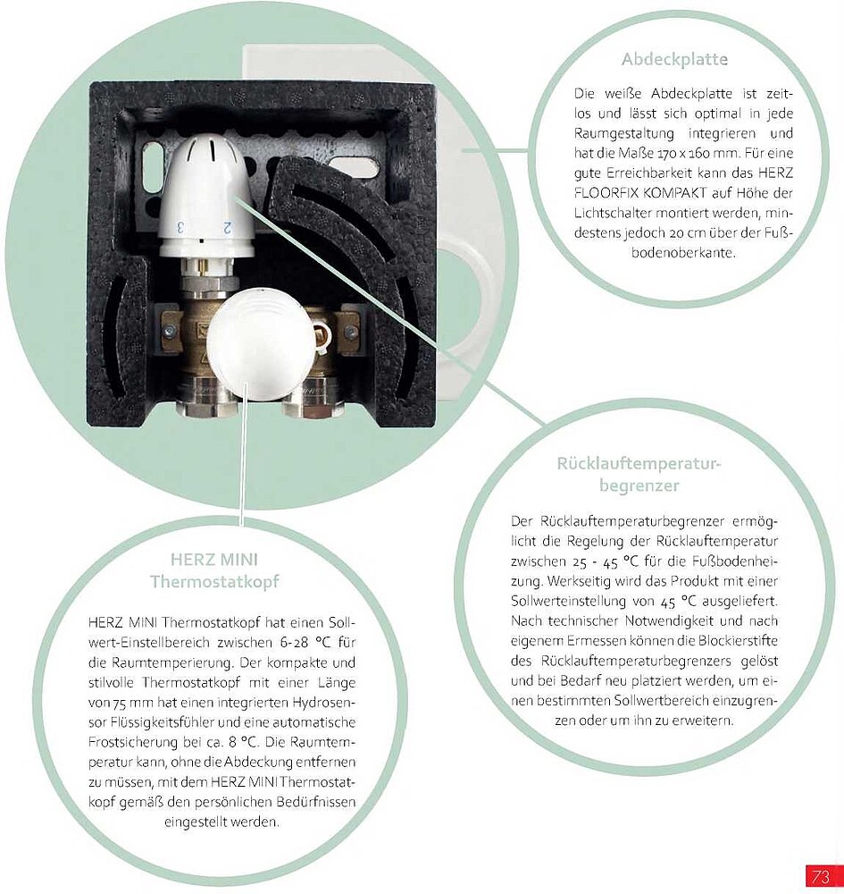 HERZ Armaturen bietet für alle Komfortliebhaber HERZ FLOORFIX KOMPAKT an: Die einfache Lösung zur Einzelraumregelung mittels Thermostatventil und Rücklauftemperaturbegrenzer.