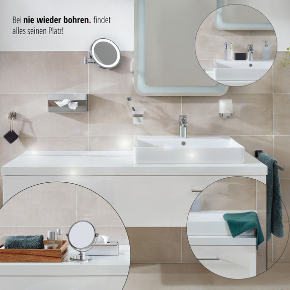 Verwandeln Sie das Bad Ihrer Kunden mit nie wieder bohren. in eine ordentliche Wohlfühloase.