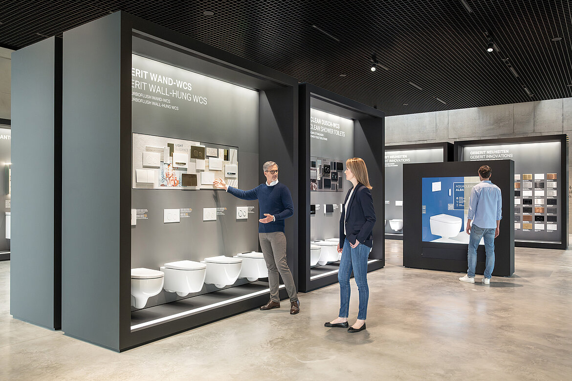 Darüber hinaus erleben die Besucher auf knapp 1.000 Quadratmetern die Ausstellung, bestehend aus zwei Bereichen. Im Bereich „Know-How Installed“ werden die Lösungen und Services von Geberit für die Planung und Montage von Sanitärinstallationen hinter der Wand thematisiert und erlebbar gemacht. Der Bereich „Design Meets Function“ veranschaulicht die Produktwelt von Geberit vor der Wand: die Verschmelzung von Funktionalität mit ästhetischem Design in den Bereichen WC, Waschplatz und Dusche. Zur Ausstellung gehört auch die AquaClean Testzone, ein eigener Bereich für das Dusch-WC.