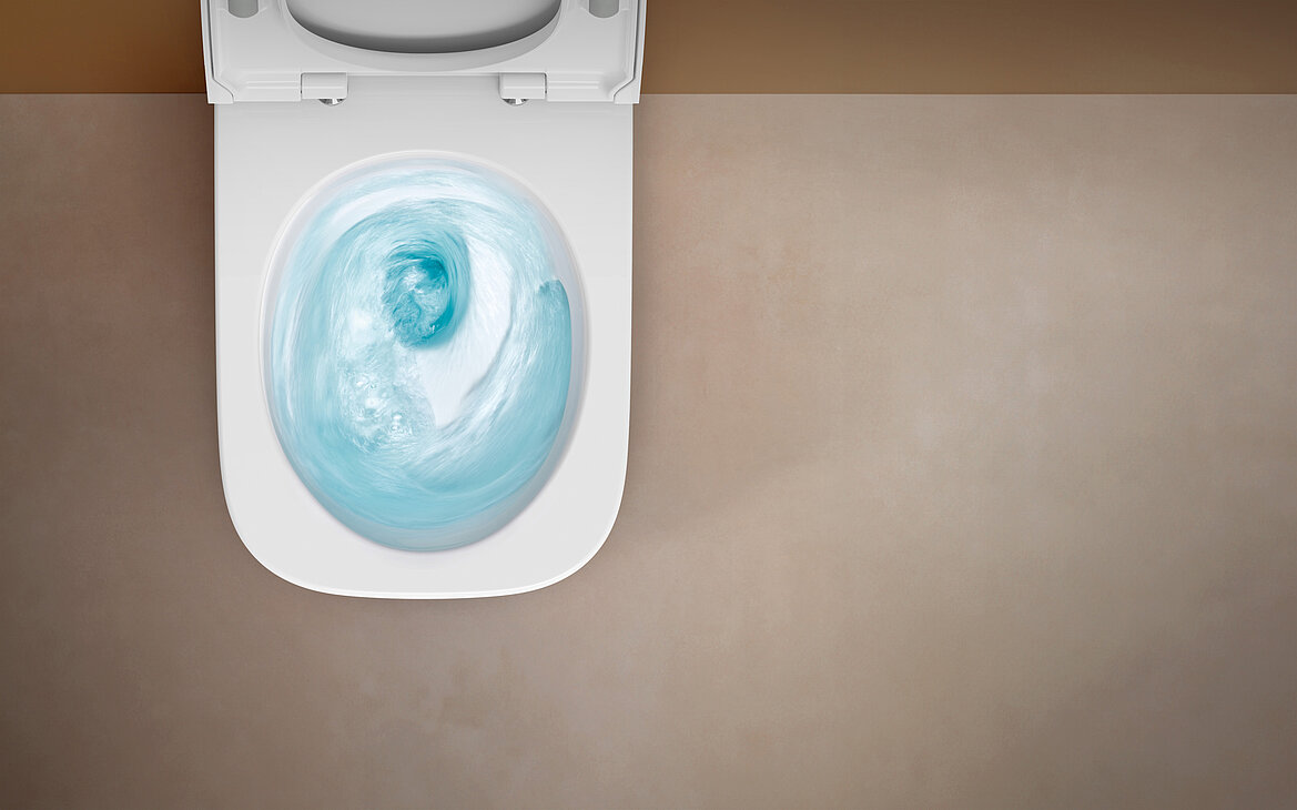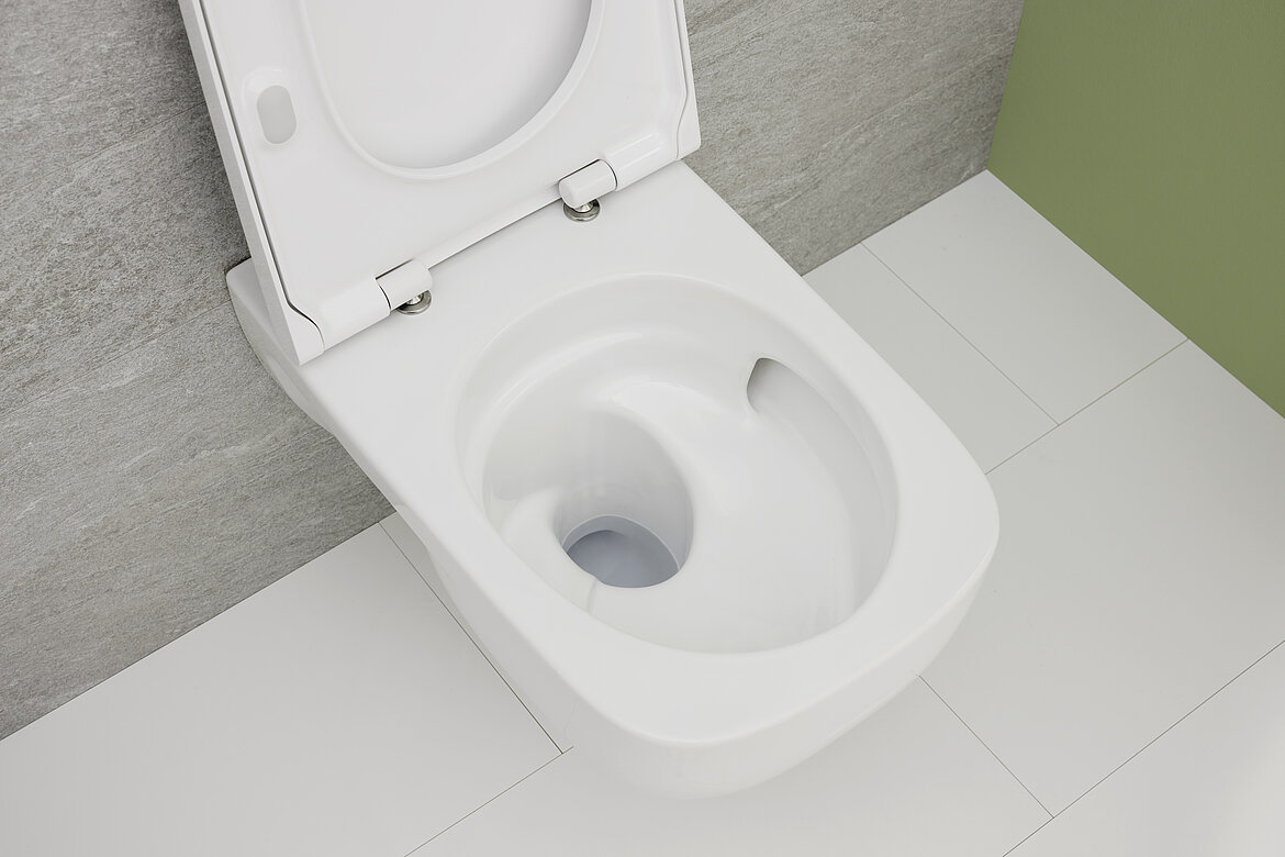 Mit der TurboFlush-Spültechnik erhalten die eckigen Geberit WCs eine neue Innengeometrie. Dadurch wird das Wasser kraftvoll und präzise in einer spiralförmigen Bewegung durch die Keramik geführt, was eine besonders gründliche und flüsterleise Ausspülung ermöglicht. Für den Nutzer ergeben sich zudem Reinigungsvorteile, denn zum einen sorgt die optimierte und kraftvolle Spülung der gesamten Innenkeramik für weniger Reinigungsaufwand. Zum anderen sind TurboFlush WC-Keramiken von Geberit konsequent spülrandlos gestaltet, so fallen schwer zugängliche Flächen und versteckte Bereiche weg, an denen sich sonst Keime festsetzen könnten. Beides bietet große Vorteile bei der Reinigung der Keramik.