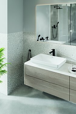 In klassischem Chrom oder trendigem Matt Black fügen die Armaturen sich harmonisch in jedes Badambiente ein. Technisch überzeugen sie mit der GROHE SilkMove Kartusche, die noch nach vielen Jahren eine seidenweiche, präzise Steuerung von Wassermenge und -temperatur ermöglicht. GROHE Cubeo ist auch als energiesparende Variante mit SilkMove ES verfügbar. Diese Technologie sorgt dafür, dass in der Mittelstellung des Hebels nur Kaltwasser fließt.