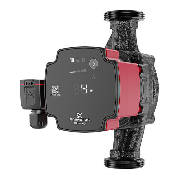 Äußerlich fallen die neuen Modelle durch das an Grundfos Einbaupumpen angelehnte eckige Gehäuse und ein neu gestaltetes Frontpanel auf. Die Anzeigeelemente wurden nutzerfreundlicher gestaltet, und der QR-Code an der Frontseite führt per Smartphone und Internetzugang direkt zur geführten Inbetriebnahme (Guided Setup) und zur Dokumentation der Pumpe. Mit Blick auf mehr Flexibilität beim Austausch ist der elektrische Anschluss zwar jetzt an der linken Seite, kann aber mit dem Pumpenkopf gedreht werden. Eine praxisnahe Neuerung, die wie andere Merkmale auf Feedback von Fachhandwerkern zurückgeht, ist der verbesserte Steckeranschluss. Der bisherige Alpha-Stecker wurde für einen besseren Halt durch einen Stecker mit Klemmmechanismus ersetzt.