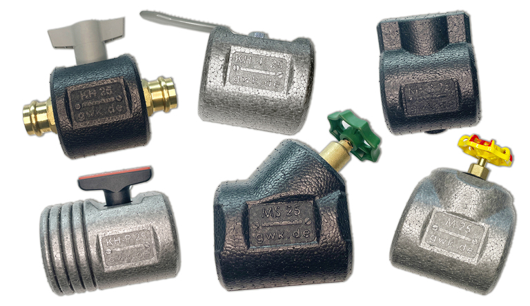 Das Baukastensystem der EPP-Serie von GWK Kuhlmann bietet unkomplizierte Lösungen für die Dämmung. Bei täglichen Arbeiten, wie Kesselumstellungen oder der Montage von Heizungsanlagen, trifft man häufig auf ungedämmte Ventile und Anschlüsse. Mit minimalem Aufwand kann die fehlende Dämmung direkt vor Ort ergänzt werden. Dank der Dämmboxen für Kugelhähne und Leitungen spart der Anlagenbetreiber, besonders angesichts gestiegener Kosten, einiges an Energie und Geld. Die Kombination einzelner Bauteile ermöglicht eine flexible Lösung für die meisten Installationssituationen.