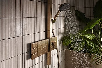 Obwohl die Raindance Alive Showerpipes technisch über ein normales Aufputzthermostat verfügen, wirken sie, als würde das Produkt mit der Wand verschmelzen. Dieser Effekt wird durch das geometrische Thermostat mit hochwertigem Messinggrundkörper und Zinkummantelung ermöglicht. Außerdem ist die Duschstange mit Aluminiumprofil durchgehend geradlinig weitergeführt, um diesen Effekt kunstvoll zu unterstreichen. Diese Lösung eignet sich optimal bei der Badsanierung. Ohne den kompletten Fliesenspiegel erneuern zu müssen, erreicht Raindance Alive die optische Anmutung von Unterputzmodulen.