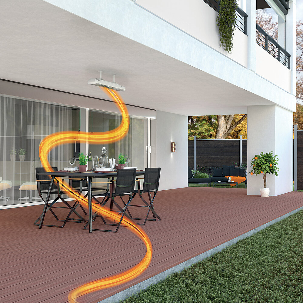Kühle Abende, warme Momente: Mit den Infrarot-Terrassenstrahlern von ETHERMA verlängern Sie die Freiluftsaison. Ob auf der privaten Terrasse oder im Gastgarten – effiziente Technologie sorgt für sofortige, zuverlässige Wärme genau dort, wo sie gebraucht wird. Komfortabel, energiesparend und wetterunabhängig.