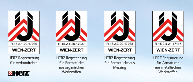 HERZ Armaturen hat von der Registrierungsstelle WIEN-ZERT für alle betroffenen HERZ Trinkwasserprodukte die erforderlichen Registrierungsbescheinigungen. Darüberhinaus sind ausgewählte HERZ Produkte mit Qualitätsmarken ausgezeichnet.