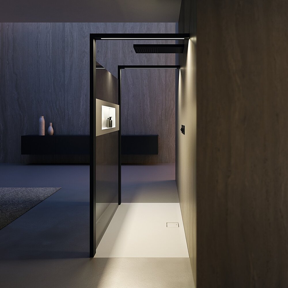 Mehr Atmosphäre: Optional integrierbare Lichtsysteme, deren Lichtstärke und -farbe von tageslichtweiß (6.700 Kelvin) bis warmweiß (2.500 Kelvin) sich stufenlos steuern lassen, sorgen für stets ausreichende Beleuchtung und eine angenehme Raumstimmung. © Hüppe GmbH