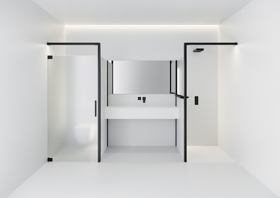 Weiteres Plus für Planung und Umsetzung: In den meisten Projekten lassen sich dank des neuartigen Rahmenprofils von Hüppe Sphere, das einen Verstellbereich von bis zu sechs bzw. acht Zentimetern zulässt, Duschplätze aufmaßfrei planen. Dies reduziert sowohl Planungs- als auch Montageaufwände spürbar – bei gleichzeitig verbesserter Planungssicherheit. Überdies verkürzen sich auch die Lieferzeiten deutlich, da zeitaufwändige, millimetergenaue Maßanfertigungen wie bei herkömmlichen Duschabtrennungen nicht nötig sind Der modulare Aufbau erleichtert schließlich zudem Transport und Installation. Denn statt großer und entsprechend schwerer Glasscheiben in einem Stück werden deutlich kleinere und leichtere Module transportiert und montiert.