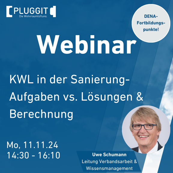 Jetzt zum DENA-zertifizierten Lüftungs-Webinar anmelden – am Mo, 11.11.2024 „KWL in der Sanierung- Aufgaben vs. Lösungen & Berechnung“