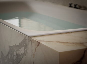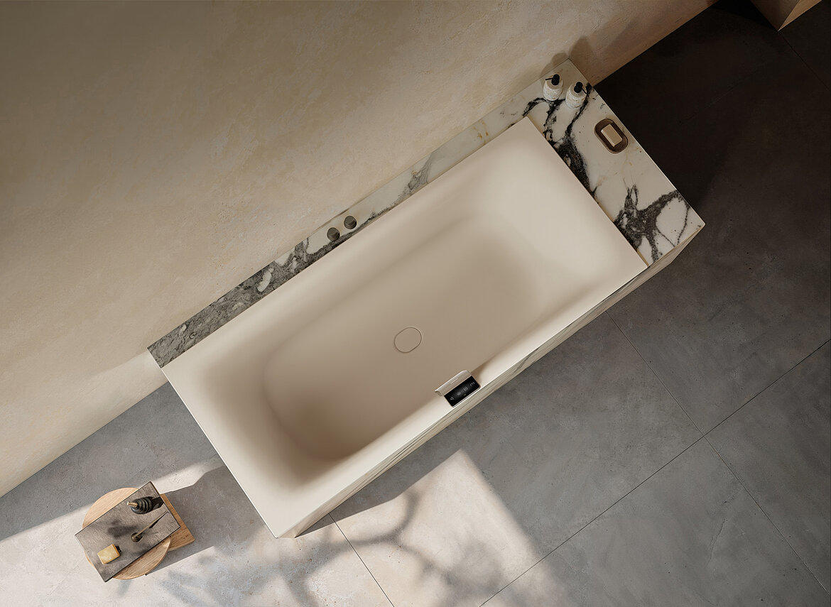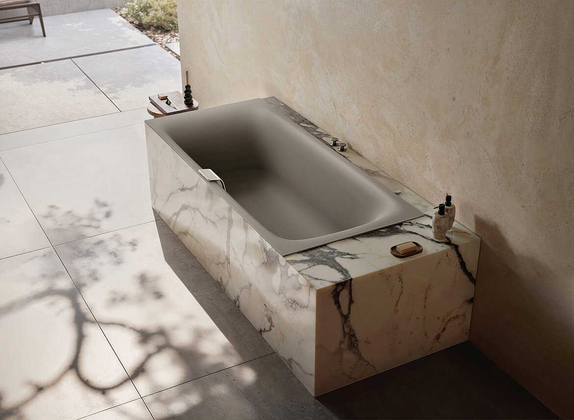 Auch das reduzierte Design folgt den Prinzipien des Zen. Gestalter Stefan Diez zeichnet verantwortlich für die klare Linienführung der Nuio Duo. Die fließende Ergonomie im Rücken- und Nackenbereich erinnert an ein von Wasser natürlich geformtes Becken und sorgt für erstklassigen Liegekomfort in dem extratiefen Wannenkörper, der organische Formen mit modernem Minimalismus verbindet.