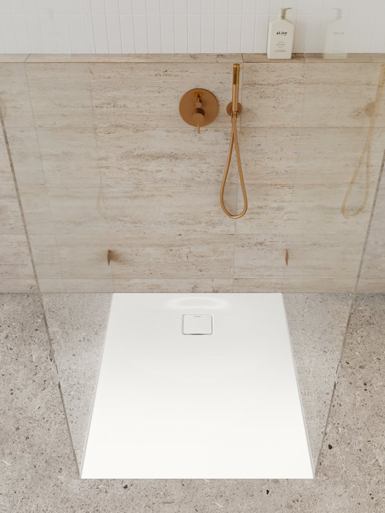 Kaldewei Aluvia mit SolidliteTM Technologie ist eine Duschflächen-Revolution in herausragendem Design. Die schwellenlose Gestaltung ermöglicht einen barrierefreien Einstieg an allen vier Seiten. Der quadratische, flächenbündige Ablaufdeckel an der schmalen Seite fügt sich nahtlos in das Gesamtbild ein. Das innovative K-Click’n Clean®-System mit integrierter Haarfangfunktion sorgt für eine einfache Wartung, erleichtert die Reinigung und erweitert die durchdachte Funktionalität. Mit nur einer Hand lässt sich der stabile Ablaufdeckel kinderleicht öffnen und schließen.