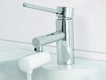 der gesamten Trinkwasseranlage vorbereitet wird. Im Falle einer mikrobiologischen Kontamination müssen alle Entnahmestellen mit endständigen Filtern ausgestattet werden. Die endständigen Filter montiert man unmittelbar an den jeweiligen Entnahmestellen: an Duschköpfen, Badewannenbrausen, Waschtisch- und Küchenarmaturen. „Endständig“ bedeutet dabei, dass es keine weiteren technischen Bauteile zwischen Filter und Nutzung des Trinkwassers gibt. Dank dieser Akutmaßnahme ist die bedenkenlose und uneingeschränkte Nutzung des Trinkwassers sofort nach der Installation der endständigen Filter möglich – sogar im medizinischen Bereich und bei der Pflege und Versorgung immungeschwächter Personen.