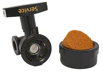 Die Wartung des MK1 ist ohne den Stillstand der Anlage möglich. Durch den abnehmbaren Verschluss mit integriertem Schwamm kann der MK1 mit geringem Aufwand gereinigt werden. Dazu wird der Griff einfach auf die Serviceposition gedreht. Schon kann der Deckel gefahrlos abgenommen werden. Nach der Wartung wird der Griff wieder in die "Work"-Stellung gebracht und der Magnetitabscheider erfüllt wieder seine Funktion.