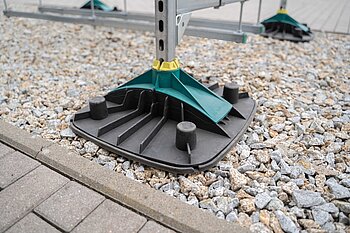 Ballastierungssystem sorgt für zusätzliche Stabilität bei hohen Windlasten. Die Befüllung erfolgt mit handelsüblichen Gehwegplatten (nicht im Lieferumfang enthalten).