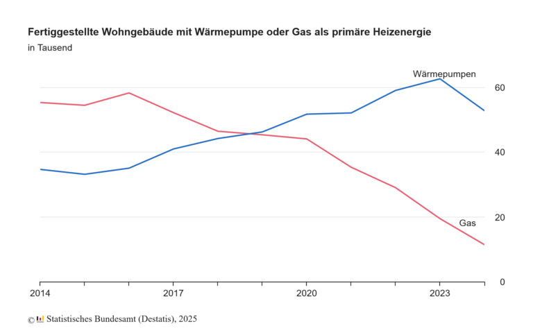 DESTATIS: Mehr als zwei Drittel der im Jahr 2024 errichteten Wohngebäude heizen mit Wärmepumpen
