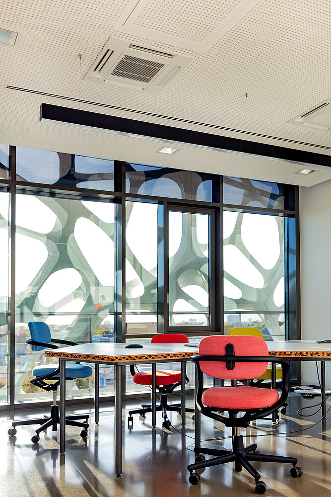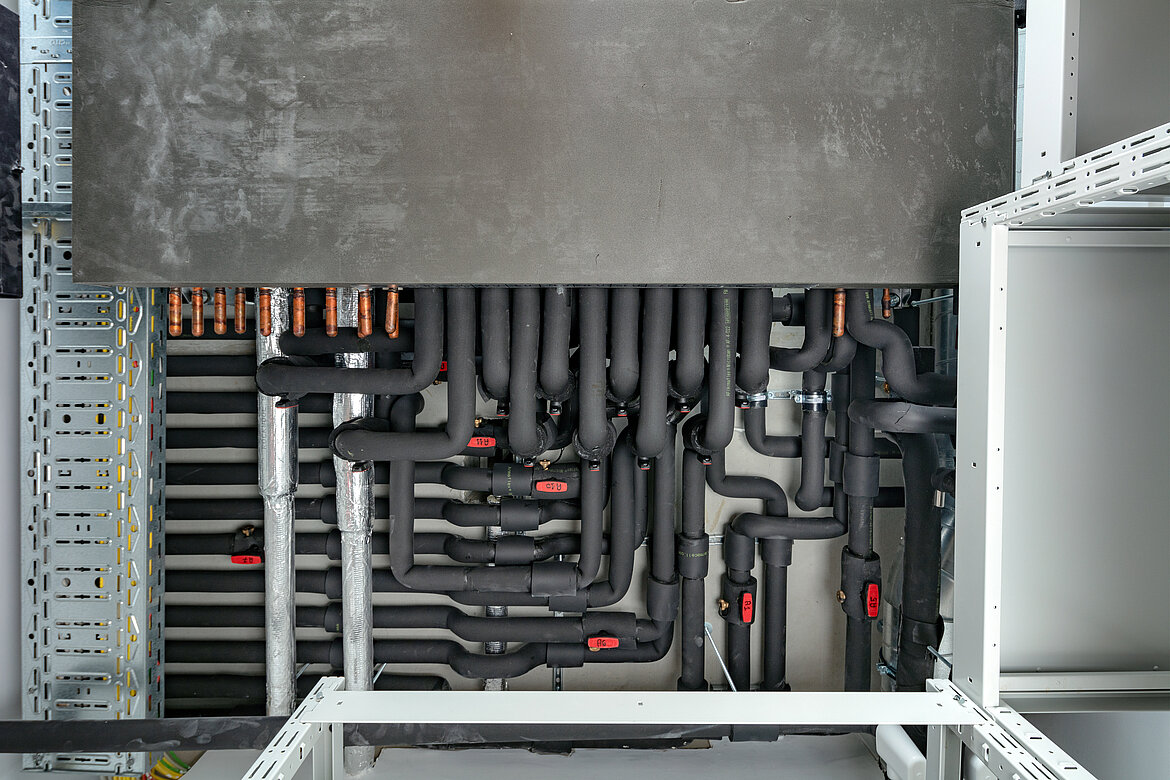 So spektakulär der gewählte Standort des BASF Creation Center auf einem ehemaligen Luftschutzbunker, so innovativ ist die eingesetzte Klima- und Heizungslösung: Installiert wurde ein Hybrid VRF R2-System der City Multi-Serie, das Flusswasser als Energiequelle nutzt und dank Wärmerückgewinnungsfunktion besonders nachhaltig betrieben werden kann. Abbildungen: Mitsubishi Electric
