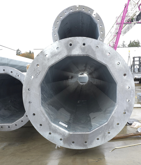 Der Aufbau des EFS8 folgt dem Baukastenprinzip. Das Innenrohr, zwischen 200 und 600 mm in der Abmessung, ist durch Flanschverbindungen druckdicht. Es wird mit einer 50 mm starken, hinterlüfteten Isolierung thermisch und mechanisch vom Außenrohr getrennt. Spezielle Abstandshalter zentrieren das Innenrohr. Das selbsttragende Außenrohr liefert Fuchs Europoles. Es besteht aus hochwertigem Baustahl der Güte S355J2C+N. Damit ist eine hohe Stabilität und Langlebigkeit gegeben. Die beidseitige Tauchfeuerverzinkung nach DIN EN ISO 1461 ergibt eine besondere Korrosionsbeständigkeit – sie ermöglicht eine Montage in Industrieluft oder in Küstenregionen ohne zusätzliche Beschichtung.