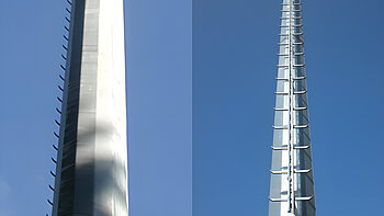 Wird eine Abgasanlage für eine größere Heizanlage, ein Nahwärmewerk oder ein kommunales Wärmekonzept gesucht, steht mit dem frei stehenden Stahl-Systemschornstein EFS8 eine exakt ausgelegte Lösung bereit. Die hochwertige Ausführung berücksichtigt bereits jetzt die neue Norm zu Querschwingungen. Dafür arbeitet Schornsteintechnik Neumarkt mit Fuchs Europoles zusammen, dem Spezialisten für Tragsysteme.