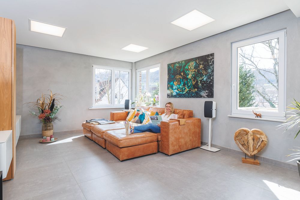 Das Haus hatte von den Vorbesitzern bereits im Jahr 1995 eine umfassende Kernsanierung erhalten, damals wurden die Fenster und Türen ausgetauscht. Im Jahr 2015 wurde das Dach gedämmt und neu gedeckt. Dieser Ausbaustatus bildete die Grundlage für eine zweite Sanierungsphase, als die Familie das Haus im Jahr 2021 übernahm. Alle Räume wurden entkernt und saniert, sämtliche Wasser- und Elektroleitungen des Hauses erneuert und ein Smart-Home-System zur Steuerung aller haustechnischen Funktionen installiert.