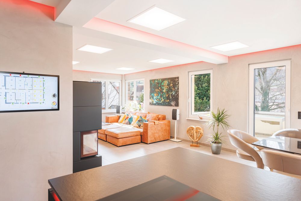 Die Wohnungen in dem historischen Gebäude sind mit einem modernen Smart-Home-System ausgestattet, mit dem sich u. a. die Lichtstimmung in den Räumen und die Wärmeverteilung steuern lassen.