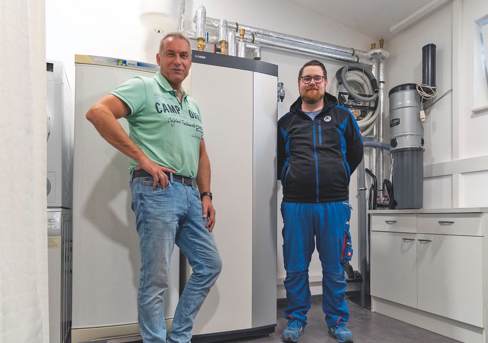 Christian Riebrandt informierte sich im Internet und stellte über die Fachpartnersuche auf der Website von NIBE den Kontakt zum NIBE Effizienzpartner Kevin Werner aus Hambühren her. Gemeinsam entwickelten sie das neue Konzept für die Haustechnik.
