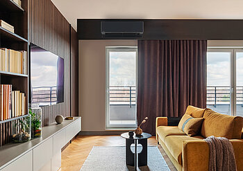 Die neuen VRF-Rastermaß-Kassetten MY3 sind mit 250 mm Höhe besonders für niedrige Zwischendecken geeignet und fügen sich mit einer Deckenblende von nur 30 mm unauffällig und elegant in die Umgebung ein. Vier individuell steuerbare Ausblaslamellen sorgen zudem für eine perfekte Luftverteilung ohne das Gefühl von kalter Zugluft.