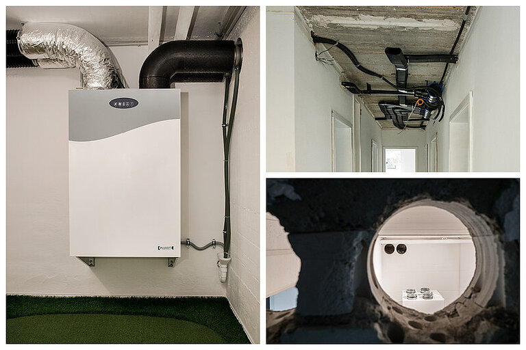 Das ist der entscheidende Beitrag zur Reduktion der Heizkosten und zur Energieeffizienz des sanierten Gebäudes. Im Sommer sorgt ein automatischer Bypass dafür, dass kühlere Außenluft direkt ins Haus gelangt, ohne durch den Wärmetauscher zu strömen – ideal für die nächtliche Abkühlung.
