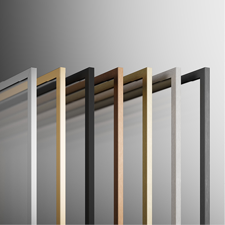 Die neu entwickelte WALK-IN im Rahmen verbindet diese beiden Aspekte. Das im Standardbereich 2 m hohe 8 mm Einscheiben-Sicherheitsglas der neuen WALK-IN wird bereits im Werk in einen 15 mm Aluminium-Rahmen eingeklebt. Er ist in den Farben Chromoptik, Schwarz matt, Gold glänzend und in den gebürsteten Farben Kupfer, Gold, Nickel und Graphit erhältlich. Die Montage kann mit einem normaler Querstabilisator erfolgen oder mit Stabilisierungswinkel 90°.