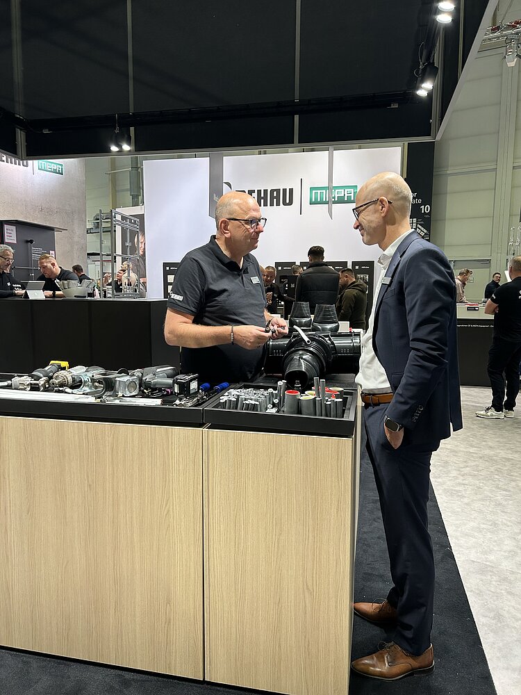 REHAU und MEPA nutzten die Gelegenheit, ihre erfolgreiche Zusammenarbeit auf einem gemeinsam gestalteten Messestand zu präsentieren. Zu den gezeigten Systemlösungen gehörten die perfekt aufeinander abgestimmten Kombinationen aus MEPA Vorwand- und Spültechnik mit REHAU Produkten. So zum Beispiel das universelle, O-Ringlose und bleifreie RAUTITAN Trinkwasserinstallationssystem und das hervorragend schalldämmende Hausabflusssystem RAUPIANO PLUS. Die Besucherinnen und Besucher zeigten großes Interesse an den gemeinsamen Lösungen und intensiven Kundengesprächen. Für REHAU und MEPA ein voller Erfolg.