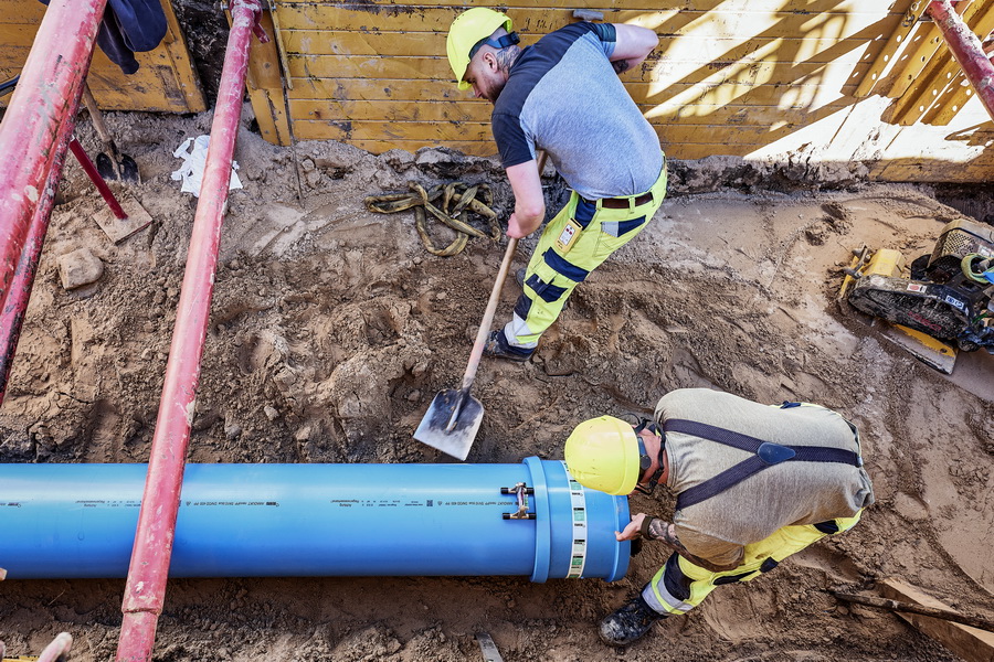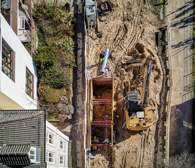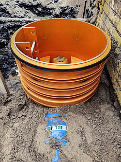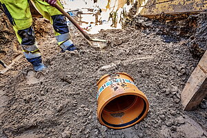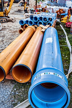 Am Hafensteig werden für Regenwasser rund 340 Meter nevoPP BLUE in DN 160 verlegt sowie 170 m in DN 400. Für das Schmutzwasser kommt nevoPP im Durchmesser DN 315 zum Einsatz. Insgesamt sechs Schächte werden eingebaut. Im Oktober dieses Jahres soll die Baumaßnahme abgeschlossen sein.