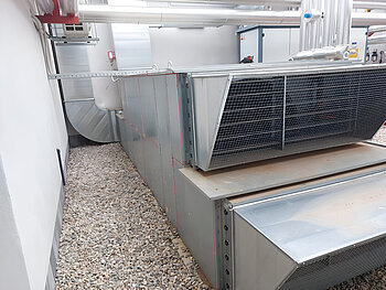 Insgesamt 19 wetterfeste, im Außenbereich aufgestellte Klimageräte KG Top mit Enthalpie-Wärmetauscher konditionieren die in das Gebäude eingebrachte Zuluft. Sie sind außerdem mit Mischklappen und wasserführenden Heiz- sowie Kälteregistern zur Temperatursteuerung ausgestattet. Keimfreiheit wird mit einem F9-Filter erreicht.