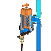 Die sich im oberen Teil des Gehäuses angesammelte Luft kann durch Abschrauben des oberen Verschlusses mit einem Schraubenzieher oder einem Flügelschlüssel abgelassen werden.