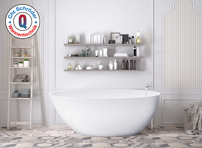 Schröder Wannentechnik: Ein- und Untertauchen mit der freistehenden Badewanne Golem E 160 S