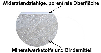 Hergestellt wird die Duschwanne aus hochwertigem Mineralguss, einem Werkstoff, der aus einer Mischung mineralischer Füllstoffe besteht. Dazu zählen unter anderem Quarzkies, Quarzsand und Gesteinsmehl. Diese Komponenten werden mit einem Bindemittel vermischt und in eine Form gegossen, aus der das Produkt nach kurzer Zeit gelöst werden kann. Dadurch entsteht eine formstabile, langlebige und pflegeleichte Duschwanne mit einer rutschfesten Oberfläche.