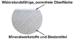 Hergestellt wird die Duschwanne aus hochwertigem Mineralguss, einem Werkstoff, der aus einer Mischung mineralischer Füllstoffe besteht. Dazu zählen unter anderem Quarzkies, Quarzsand und Gesteinsmehl. Diese Komponenten werden mit einem Bindemittel vermischt und in eine Form gegossen, aus der das Produkt nach kurzer Zeit gelöst werden kann. Dadurch entsteht eine formstabile, langlebige und pflegeleichte Duschwanne mit einer rutschfesten Oberfläche.