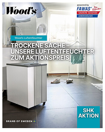 Feuchtigkeit in Wohn- oder Kellerräumen? Kein Problem – mit den Luftentfeuchtern des schwedischen Marktführers Wood‘s bietet FAWAS den SHK-Profis jetzt exklusive Aktionsangebote, die sich sehen lassen können!