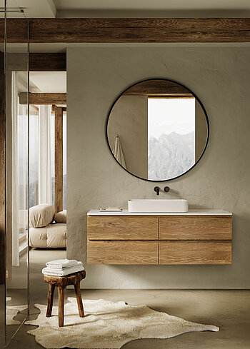 Acqua Natura ist die starke Marke von Spa Ambiente, die für lebendige Massivholzmöbel mit langem Lebenszyklus steht. Jedes Möbelstück wird durch die natürliche Maserung und sorgfältige Verarbeitung zu einem Unikat mit Charakter. Dabei kommt ein speziell für den Feuchtbereich entwickeltes Öl zum Einsatz, das den Badezimmermöbeln optimalen Schutz bietet und eine lange Lebensdauer möglich macht.