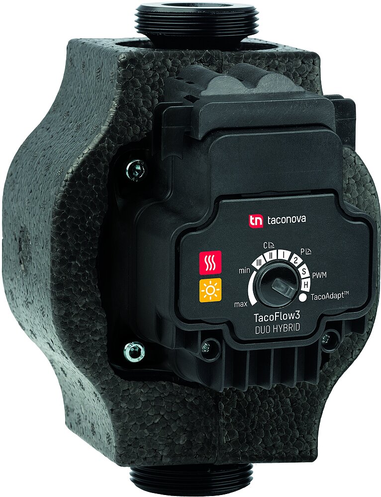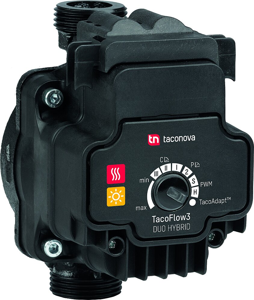 Mit der neuen Umwälzpumpe TacoFlow3 Duo Hybrid bringt Taconova ein echtes Allroundtalent auf den Markt. Als Mitglied der neuen Pumpengeneration TacoFlow3 verbindet sie kompakte Bauweise, leistungsstarke Technologie sowie vielseitige Einsatzmöglichkeiten und Steuerungsmodi, um den steigenden Anforderungen moderner Heiz- und Solarsysteme gerecht zu werden.