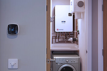 Einer der herausragenden Vorteile einer elektronisch gesteuerten Wohnungsübergabestation ist die Bereitstellung von Daten zu Energie- und Wasserverbräuchen. Die ursprüngliche Spezifikation für das britische Großprojekt sah lediglich Wohnungsübergabestationen vor. TacoTherm H 3000E bietet jedoch viel mehr als nur Hardware. Die Station ist mit einem intelligenten Zähler ausgestattet, der die praktische Fernüberwachung und Analyse des Wärmeverbrauchs ermöglicht. Der Zähler sammelt Informationen aus dem gesamten Netz, vom Technikraum bis zur Wohnungsübergabestation. Anhand dieser Daten lässt sich die Effizienz des Systems verfolgen. Auf der Grundlage dieser Informationen können bei Bedarf Verbesserungen vorgenommen werden. Ebenso können eventuelle Ineffizienzen oder Fehler identifiziert, lokalisiert und zeitnah behoben werden. Das erleichtert den Arbeitsalltag von Betreibern und Facility Managern maßgeblich. Die Projektverantwortlichen entschieden sich auch für die empfohlene intelligente Heizungssteuerung und boten den Bewohnern die praktische Steuerung über eine Smartphone- oder Tablet-App an. Mit dieser Steuerung kann die Heizung bequem aus der Ferne ein- und ausgeschaltet werden, was zu enormen Energieeinsparungen führen kann.