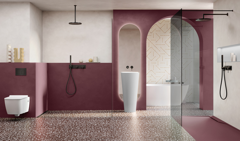 - Neue aufeinander abgestimmte Oberflächen und Farben, die eine vollkommene Kontinuität in der Gestaltung des Badezimmers ermöglichen.