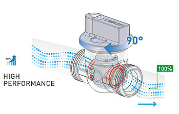 164 und ULTRA sind mit einer Absperrgruppe mit antiblockierender Technopolymer-Kugel „Soft Turn“ ausgestattet, die auf dauerhaft konstante Leistung ausgelegt ist: