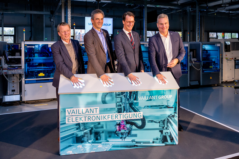 Der Remscheider Heiztechnikspezialist Vaillant Group hat an seinem Stammsitz in Remscheid eine neue Fabrik zur Herstellung von Elektronikkomponenten in Betrieb genommen. Der offizielle Start der Produktion erfolgte durch NRW-Ministerpräsident Hendrik Wüst, den Remscheider Oberbürgermeister Burkhard Mast-Weisz und Vertreter der Geschäftsführung der Vaillant Group im Rahmen einer Einweihungsfeier am 20. November 2024. Die neue Elektronikfertigung hat eine Schlüsselfunktion für das internationale Produktionsnetzwerk des Unternehmens. Aus dieser Fabrik werden weltweit alle Standorte der Vaillant Group mit Elektronikbaugruppen beliefert, die für Regelung und Steuerung moderner Wärmepumpensysteme und Gasheizgeräte notwendig sind.