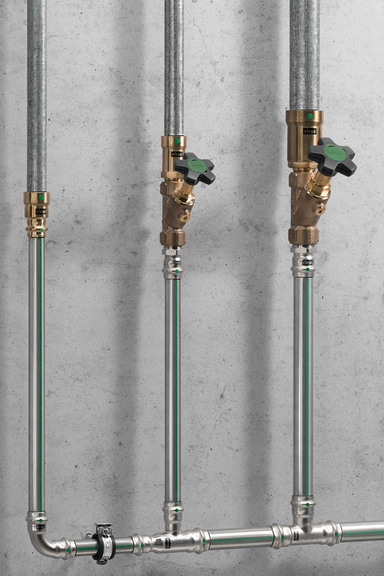 Die neuen Übergangsstücke sind mit einem definierten Schiebebereich ausgestattet. Das erleichtert den nachträglichen Einbau von Armaturen wie Schrägsitzventilen in bestehenden Rohrleitungen in nur wenigen Schritten.