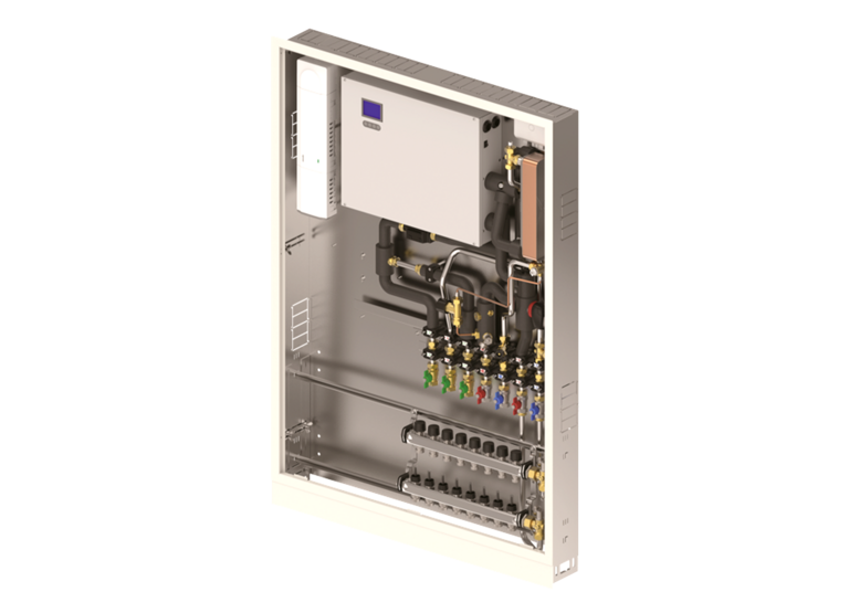 Die anschlussfertige Wohnungsstation Uponor Combi Port E-Hybrid bietet einen hohen Grad an industrieller Vorfertigung sowie Qualität und reduziert Fehlerquellen bei Planung, Bestellung und Installation. Praxiserfahrungen zeigen, dass vorgefertigte HIUs bis zu einem Drittel der Installations- und Rüstzeit für die Gesamtanlage einsparen. Ein weiterer Vorteil der vorgefertigten Wohnungsstationen ist, dass weniger Material zur Baustelle transportiert werden muss.
