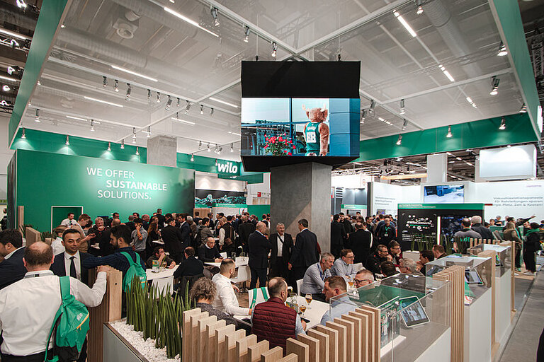 Wilo hat die ISH 2025 unter das Motto „Wir bieten nachhaltige Lösungen“ gestellt. Die Botschaft ist aus dem in der übergeordneten Nachhaltigkeitsstrategie verankerten Wirkbereich Creating abgeleitet. Bild: WILO SE