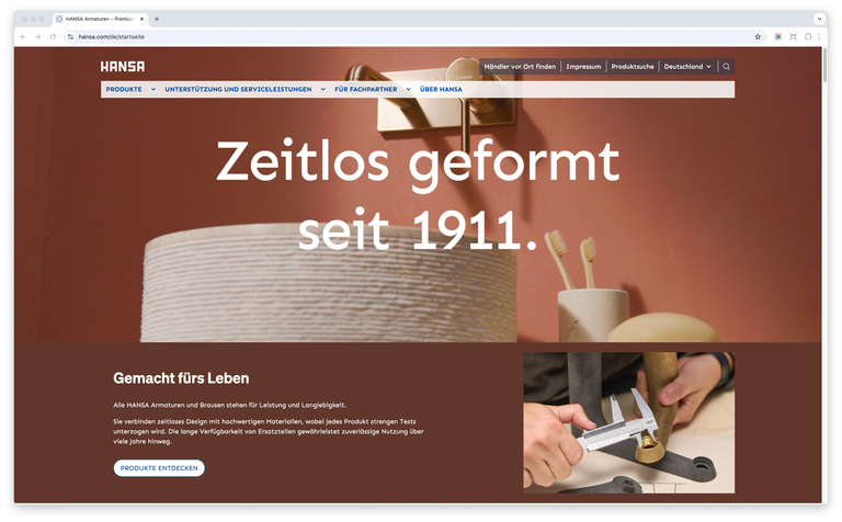 Besonderes Augenmerk liegt auch auf der ästhetischen Präsentation: Hochwertige Produktbilder und Anwendungsbeispiele visualisieren das Design der HANSA Produktpalette, zeigen Materialien, Oberflächen und Details authentisch und dienen allen Besuchern als Inspirationsquelle. Die neue Website transportiert die zentralen Werte des Unternehmens: Qualität, Langlebigkeit, Funktionalität und Innovationskraft. Mit dem Relaunch zeigt HANSA, wie ein zeitgemäßer Markenauftritt Inspiration, Service und klare Orientierung für den Nutzer vereint.